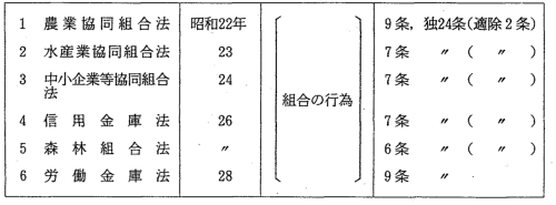 (独占禁止法第24条に基づき適用除外となる組合の設立等に係わる法律)