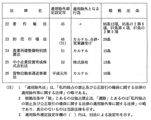 独占禁止法適用除外制度根拠法令一覧