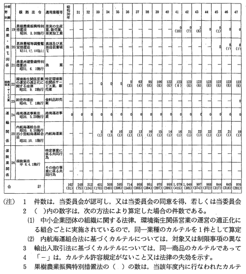 年次別・適用除外法令別カルテル件数の推移