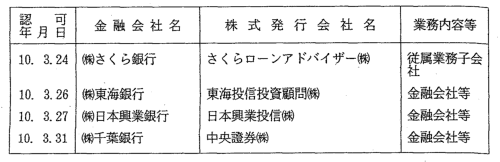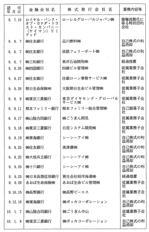 金融会社の株式保有の制限に係る認可一覧 |