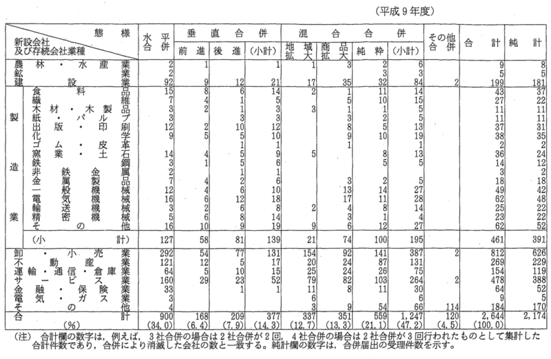態樣別・新設会社及び存続会社業種別合併件数 |