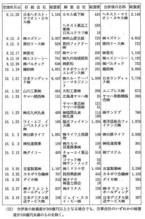 合併後の総資産が300億円以上となる合併 |