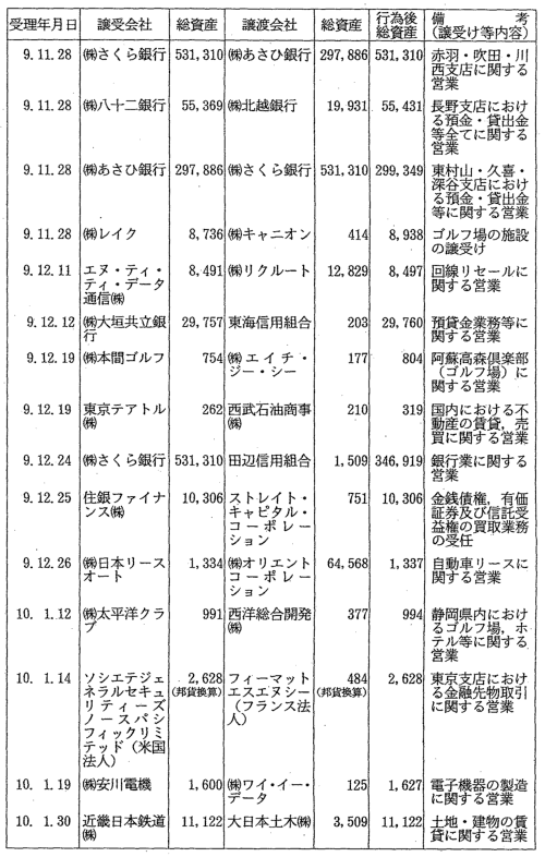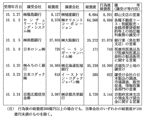 行為後の譲受け等会社の総資産が300億円以上となる営業譲受け等 |