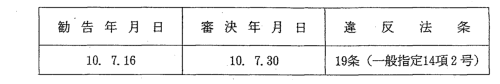 平成10年6月19日,本件について,当委員会が独占禁止法の規