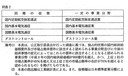 場占拠率に関する平成8年の調査結果を踏まえてガイドライン別表の改定を