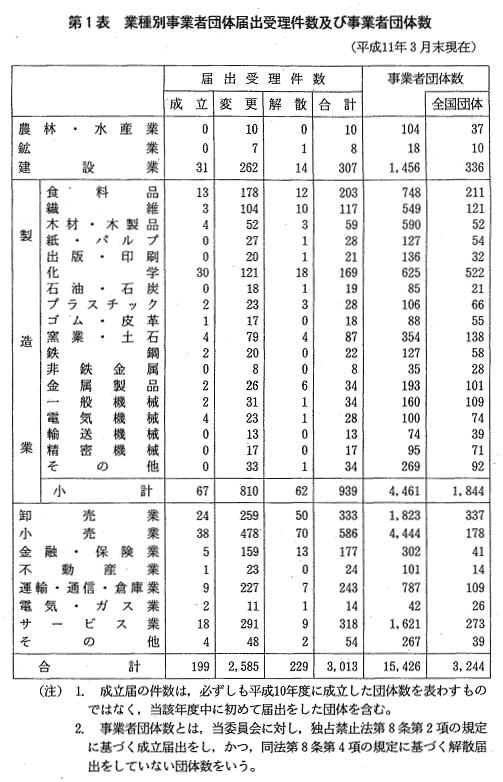 をしていない事業者団体は,全体で15,426団体となっている(第1表)。