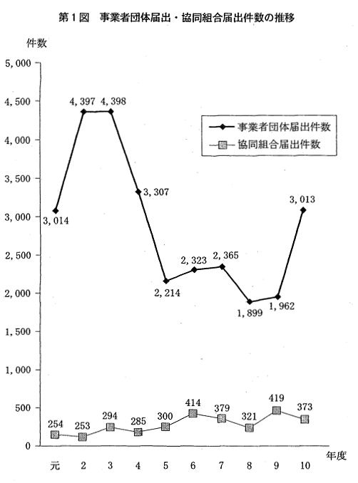 件であった。また,平成10年度までに当委員会に対し,届出があった協同組
