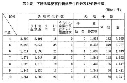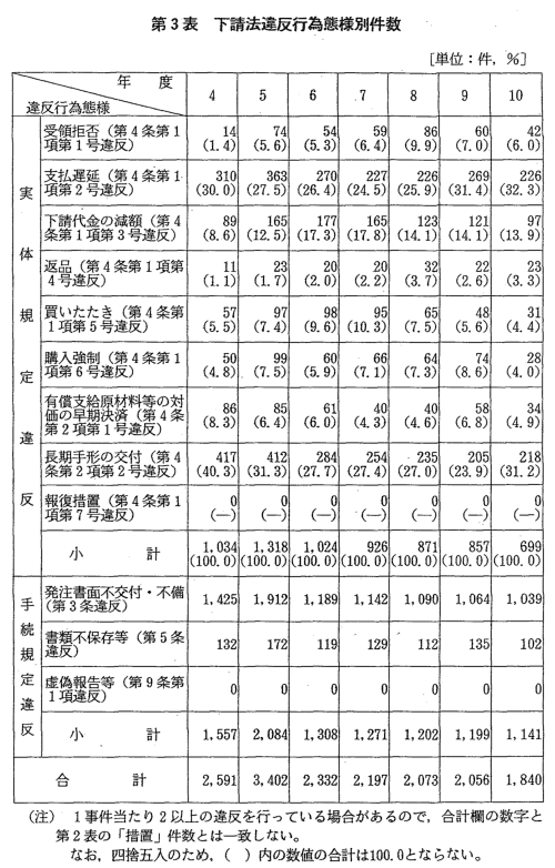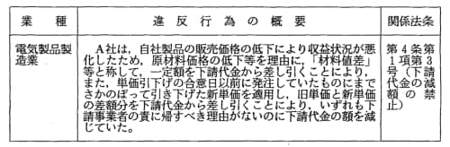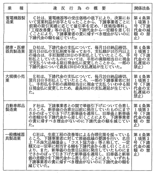 なっており,このうち,下請代金の支払遅延(第4条第1項第2号違反)
