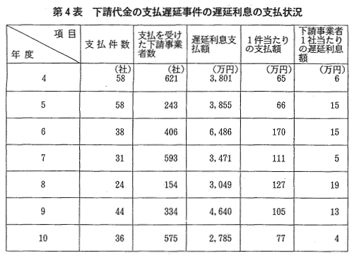 より総額2785万円の遅延利息が575社の下請事業者に支払われており(第