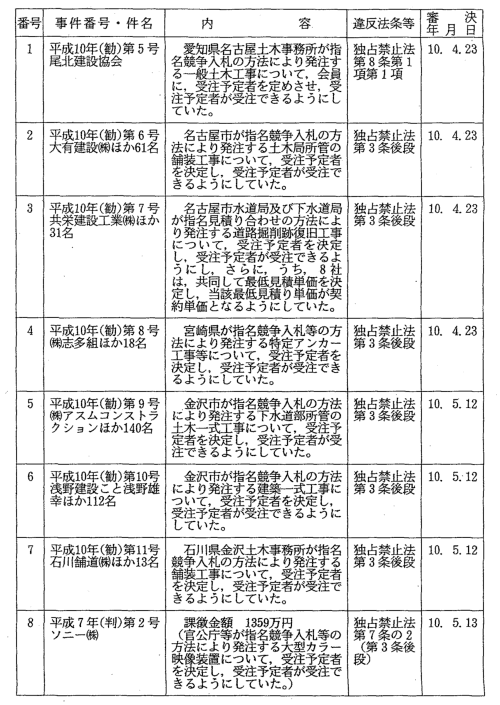 類の物件について、二社が共に入札に参加することが行われるようになっ
