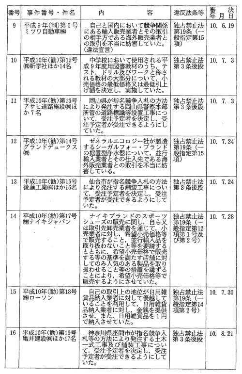 平成九年一二月一〇日、本件について、当委員会が独占禁止法の規定に