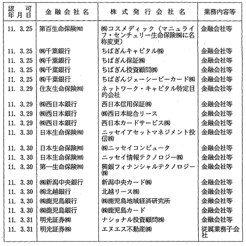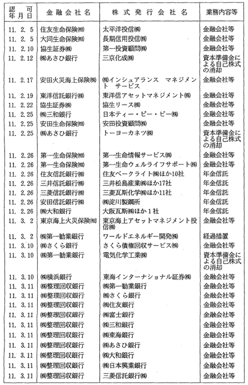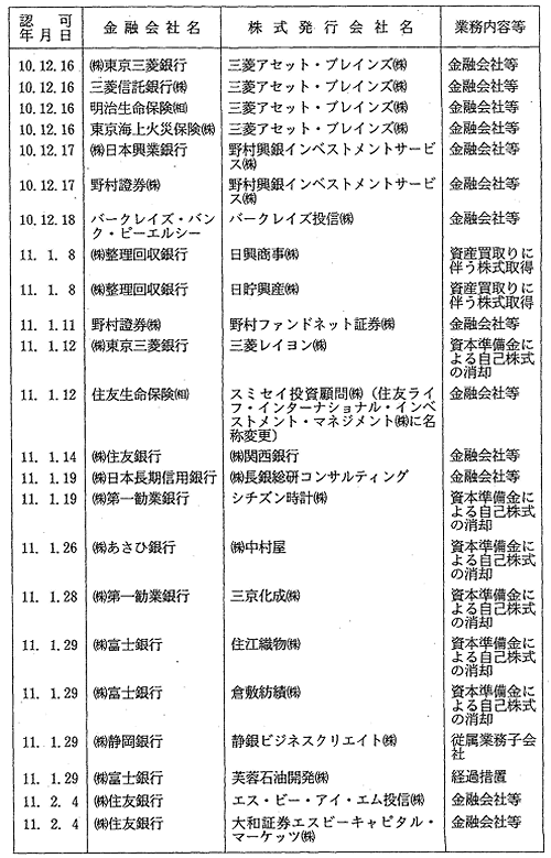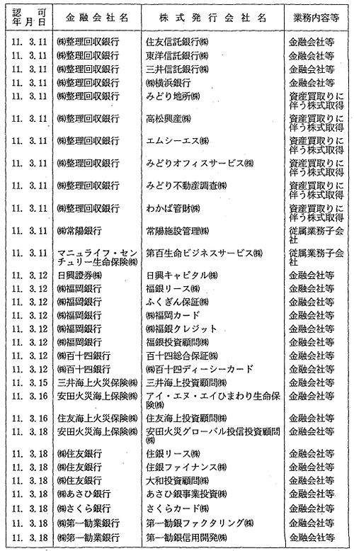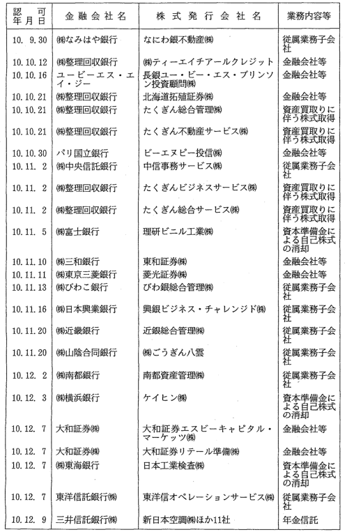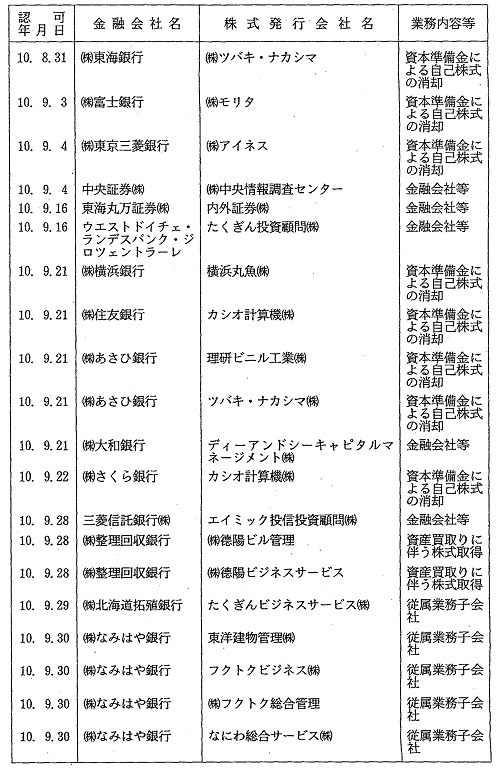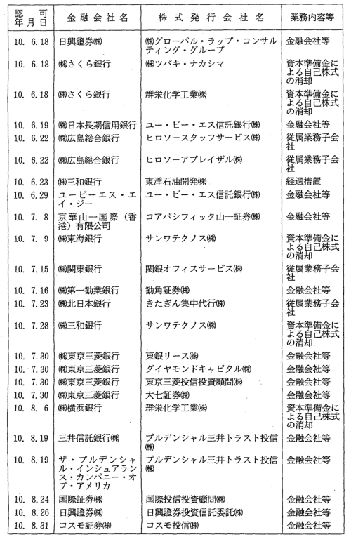 | 5-1表 | 金融会社の株式保有の制限に係る認可一覧 | ||||||||