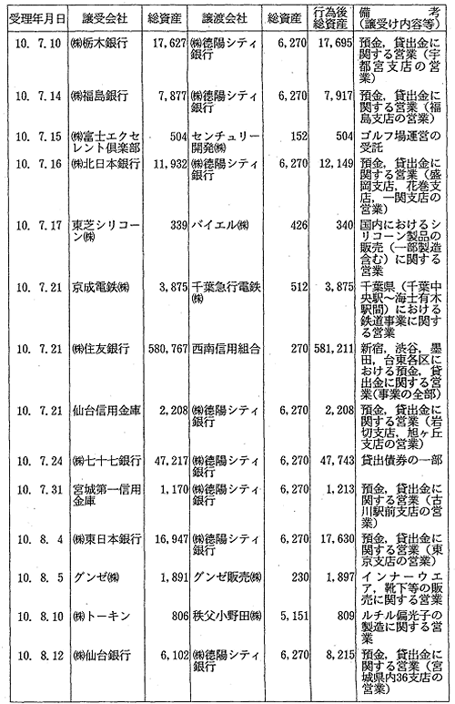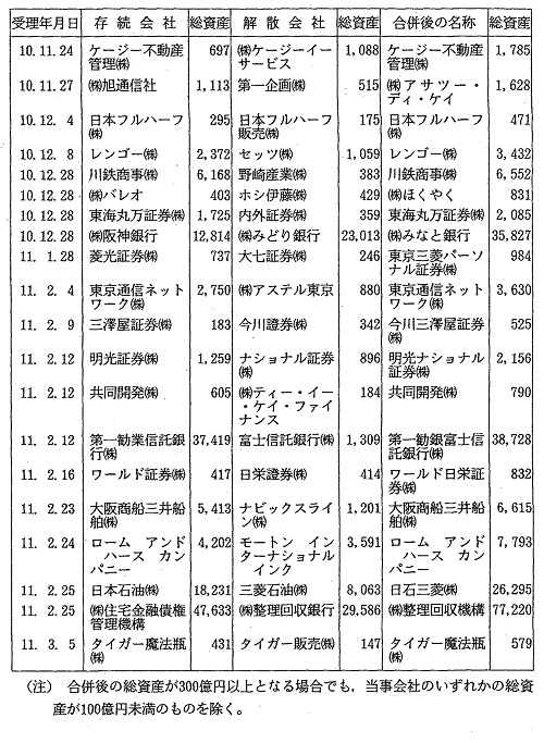 | 5-11表 | 合併後の総資産が300億円以上となる合併 | ||||||||
