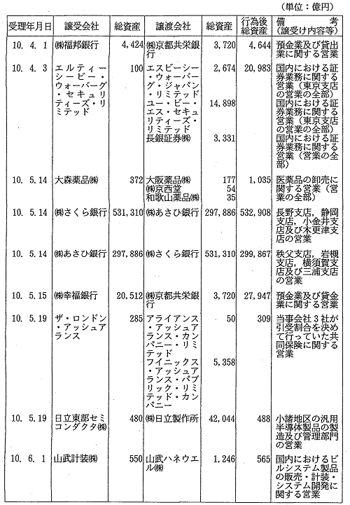 | 5-14表 | 水平関係の営業譲受け等後の譲受け等会社の シェア・順位(平成10年度) |