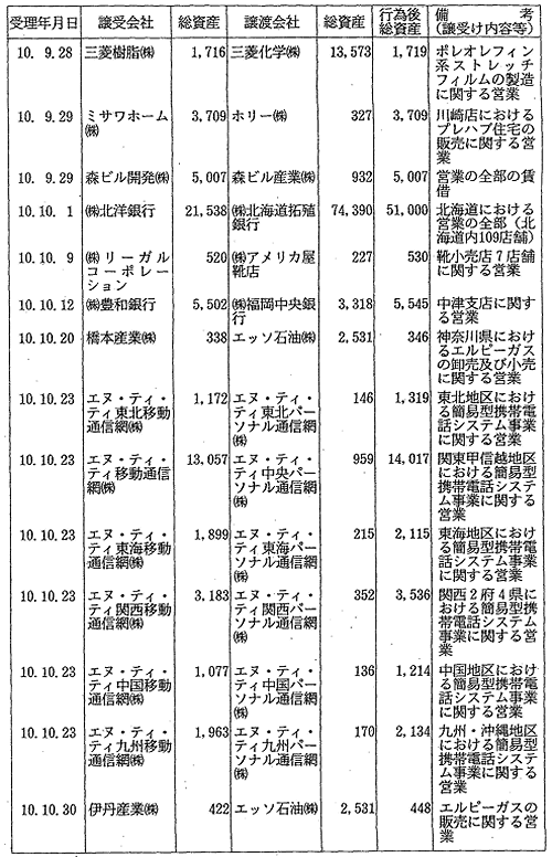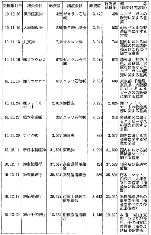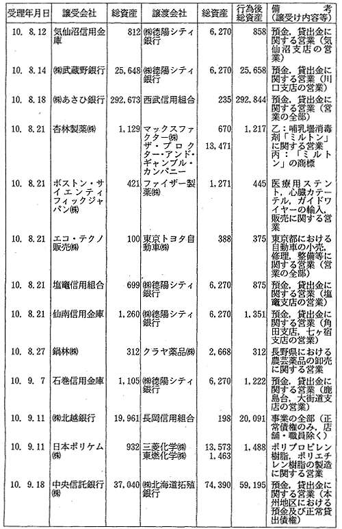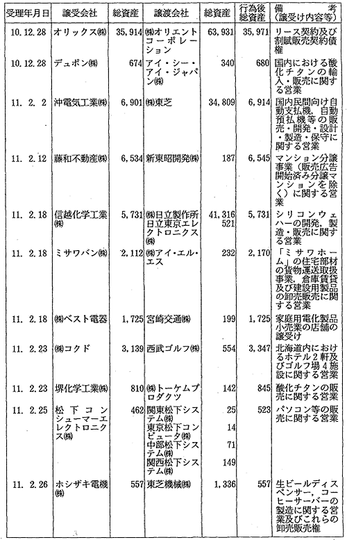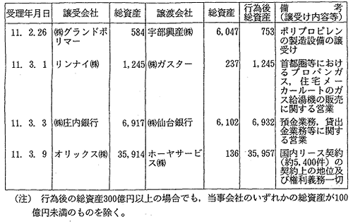 | 5-12表 | 行為後の譲受け等会社の総資産が300億円以上となる 営業譲受け等 |