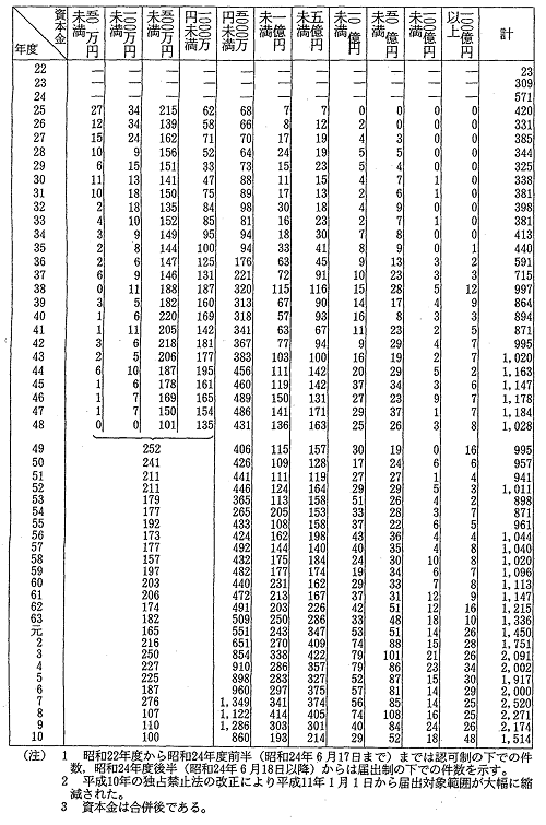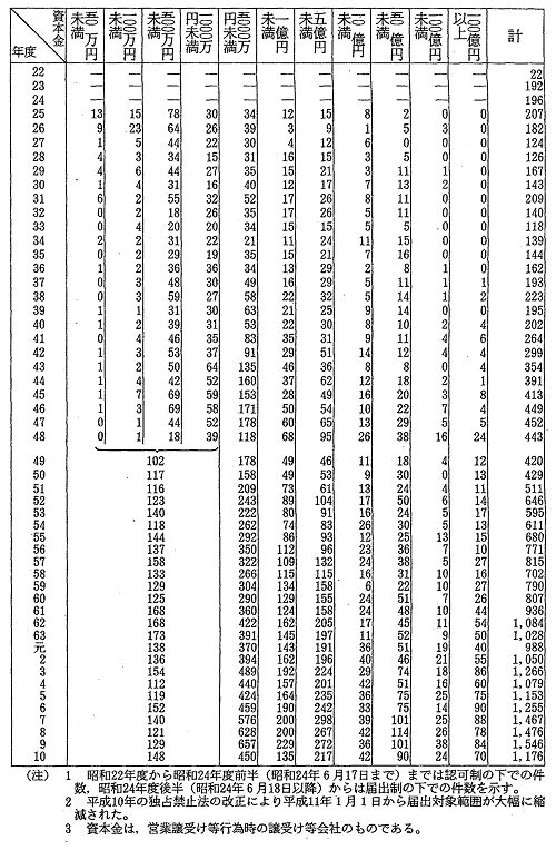 | 5-16表 | 資本金額別営業譲受け等件数の推移 | ||||||||