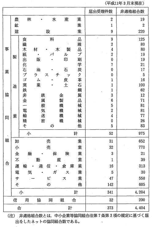 業種別事業協同組合及び信用協同組合の届出受理件数並びに非