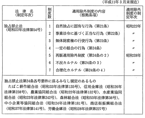 独占禁止法に基く適用除外制度