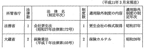 個別法に基く適用除外制度