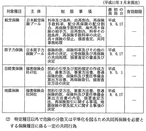 特定の保険種目に係る共同行為