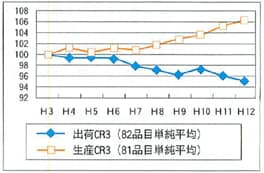 平成3年と平成12年の2時点のデータを用い,データ的に捕捉可能な価格,輸入,市場規模,市場集中度について統計的な手法を用いて分析した結果,以下の関係が有意にみられた。