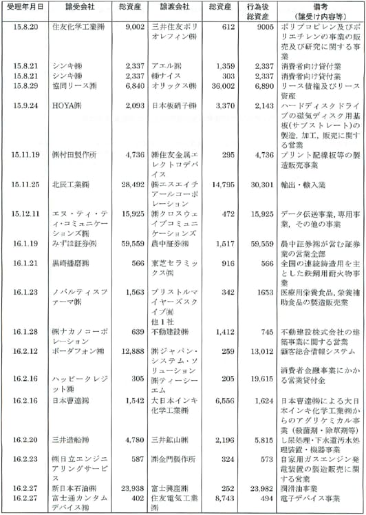 3社以外の合併,すなわち消滅会社が2社以上である場合には,総資産額が最も多い消滅会社を基準とした。 |