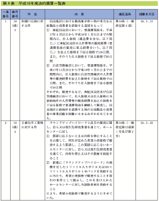 反行為が対象となっているところ,平成18年度において適用された事例はなかった。