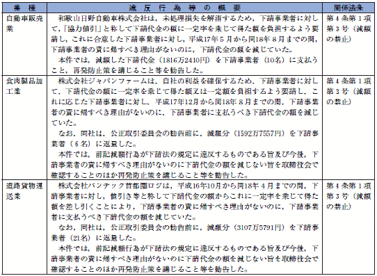 させるほか,下請事業者が被った不利益の原状回復措置等を講じさせている(第2表,附