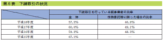 た場合の比率は46.9%)となっている(第6表参照)。また,業種別の下請取引の比率を